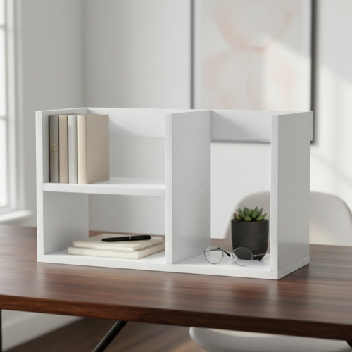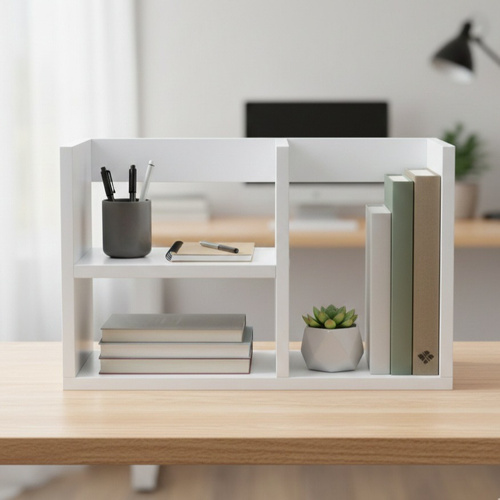 اگر بهدنبال راهکاری هوشمندانه برای رهایی از آشفتگی کتابها، پروندهها و لوازم جانبی روی میز کار یا تحصیل خود هستید، کتابخانه رومیزی برند «داچوب» با طراحی مدرن و مینیمال، انتخابی ایدهآل است. این محصول با ابعاد بهینه (طول 48، ارتفاع 30 و عمق 17 سانتیمتر) بهگونهای مهندسی شده که کمترین فضای ممکن را اشغال کرده و در عین حال بیشترین ظرفیت چیدمان را در دو طبقه مجزا و بخشهای عمودی در اختیار شما قرار دهد. بدنه این کتابخانه از ورق MDF باکیفیت ساخته شده که با نوار لبه PVC ضخیم (2 میلیمتری) پوشانده شده است؛ این ویژگی علاوه بر افزایش چشمگیر مقاومت در برابر ضربه و رطوبت، ظاهری تمیز، بدون لبههای تیز و کاملاً حرفهای به محصول بخشیده است. طراحی هندسی و متقارن این کتابخانه به شما اجازه میدهد تا علاوه بر کتاب، اکسسوریها، گلدانهای کوچک یا لوازم اداری خود را با سلیقه شخصی چیدمان کنید و به محیط اتاق یا دفتر کارتان جلوهای لوکس و مرتب ببخشید. داچوب با ترکیب دوام صنعتی و زیبایی بصری، محصولی ارائه کرده است که نهتنها یک ارگنایزر کاربردی، بلکه بخشی از دکوراسیون مدرن میز شما خواهد بود.